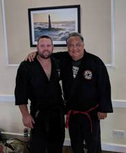 Neil Hourston 9th Dan of the Scottish Kempo Academy stands with Shidoin.